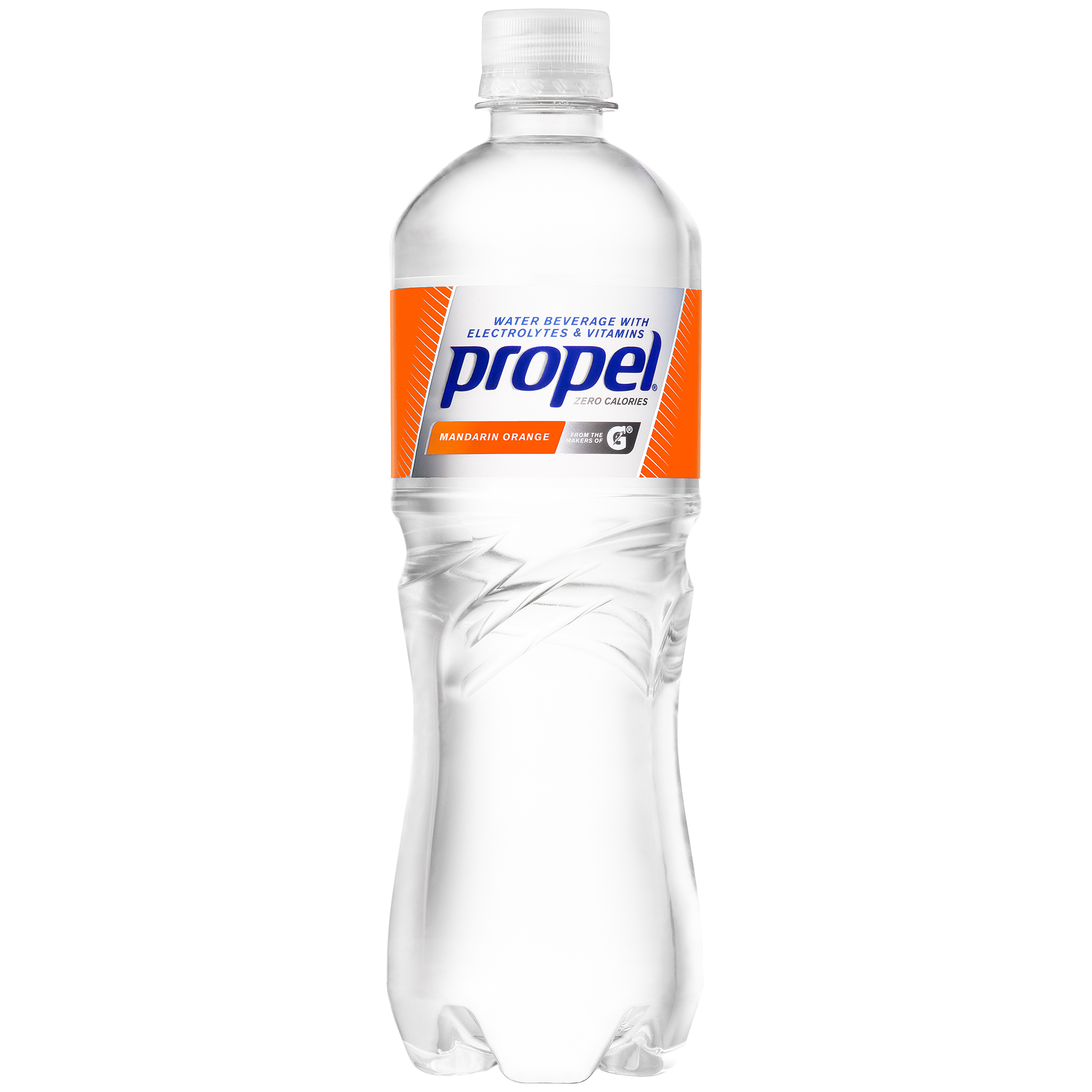 Products | Electrolyte Water & Powdered Drink Packs | Propel Water per 20-oz. serving. Full Nutrition Information Flavored Electrolyte Water Berry Enhanced with Gatorade-level electrolytes plus Vitamin B and antioxidant Vitamins C and E, Propel flavored electrolyte water helps hydrate and replenish to get the most out of your workout without adding calories (0 calories per bottle). Buy Now per 12-oz. serving.