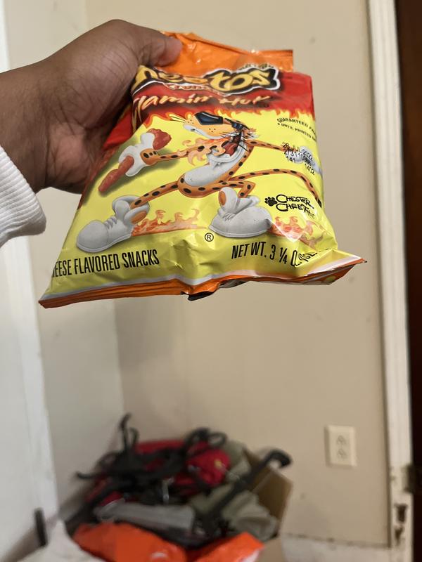 Calories in Cheetos Crunchy Flamin' Hot (Package) and Nutrition Facts Nutrition Facts Serving Size 1 package (56.7 g) Amount Per Serving Calories 330 % Daily Values* Total Fat 22.00g 28% Saturated Fat 3.000g 15% Trans Fat 0.000g Cholesterol 0mg 0% Sodium 500mg 22% Total Carbohydrate 30.00g 11% Dietary Fiber 1.0g 4% Sugars 1.00g Protein 3.00g Vitamin D - Calcium 10mg 1% Iron 0.90mg 5% Potassium 70mg 1%