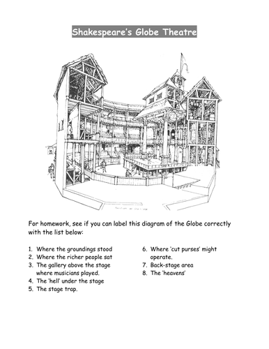 Globe Theatre Diagram - Printable - PurposeGames.com Globe Theatre Diagram - Printable Download and print this quiz as a worksheet. You can modify it to fit your needs before you download. This is a printable worksheet made from a PurposeGames Quiz. To play the game online, visit Globe Theatre Diagram Download Printable Worksheet Please note!