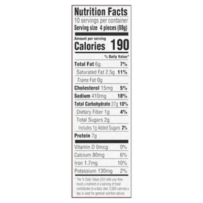 Bagel Bites Three Cheese - Shop Meals & Sides at H-E-B Bagel Bites Three Cheese ; Trans Fat, 0g ; Cholesterol, 10mg, 3% ; Sodium, 350mg, 15% ; Total Carbohydrate, 32g, 11% ... Find Bagel Bites Calories & Nutrition Facts - MyFitnessPal Bagel Bites. Bagel bites, 4 bagels · Carbs: 28g · Fat: 6g ; Three Cheese Bagel Bites. Bagel Bites, 4 pieces · Carbs: 31g · Fat: 4.5g ; Bagel Bites. 1 piece · Carbs: ... Bagel Bites Cheese & Pepperoni Mini Bagels Value Size - H-E-B Bagel Bites Cheese & Pepperoni Mini Bagels Value Size ; Total Carbohydrate, 27g, 9% ; Dietary Fiber, 1g, 5% ; Sugars, 2g ; Protein, 7g, 13% ...