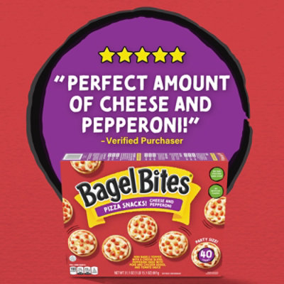 Bagel Bites Pizza Snacks Cheese & Pepperoni - 9 ct - Stop & Shop Per 4 Mini Bagels: 190 calories; 2.5 g sat fat (11% DV); 420 mg sodium (18% DV); 2 g sugars. 7 g of protein per serving. Quality since 1952. Real. Made with ...